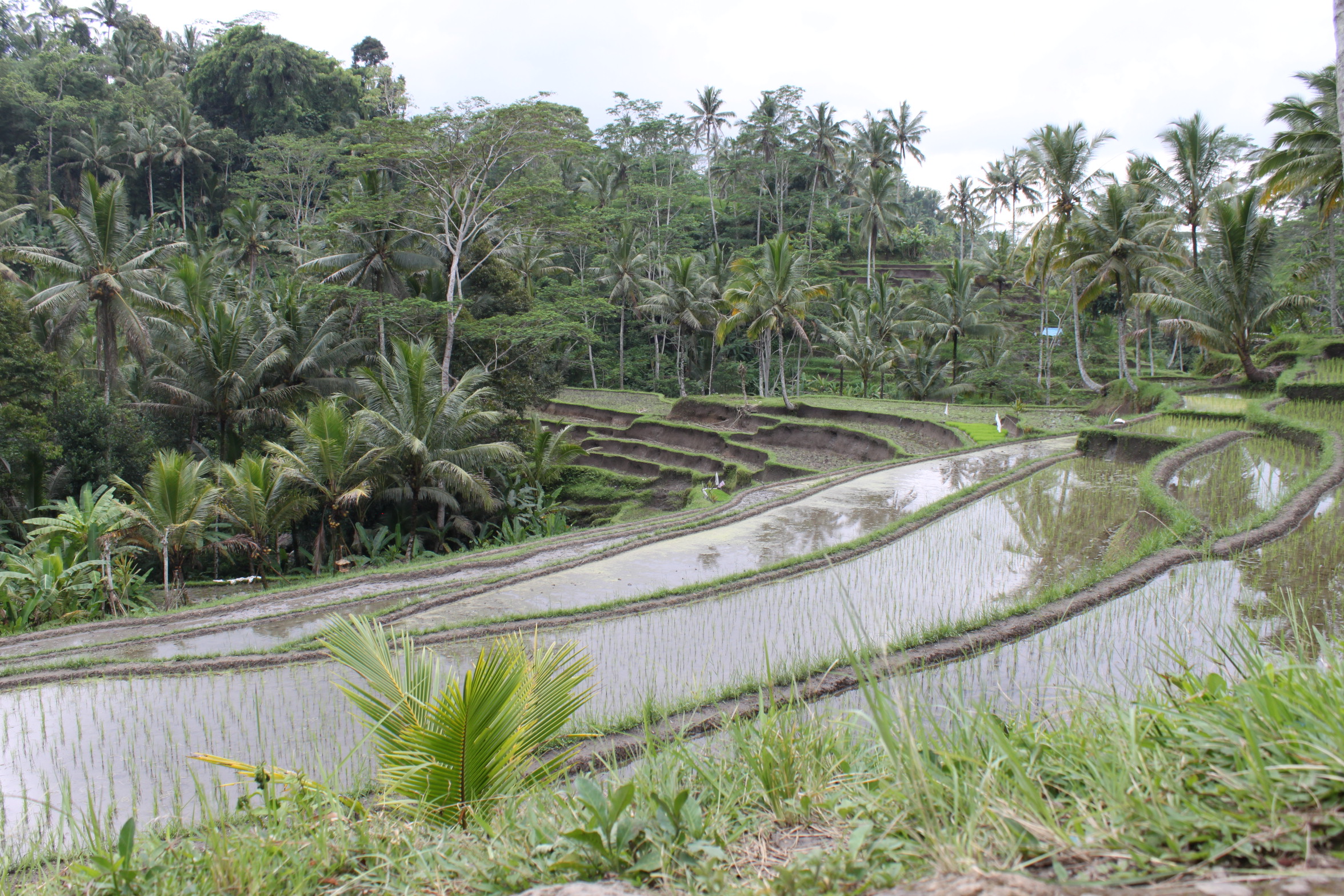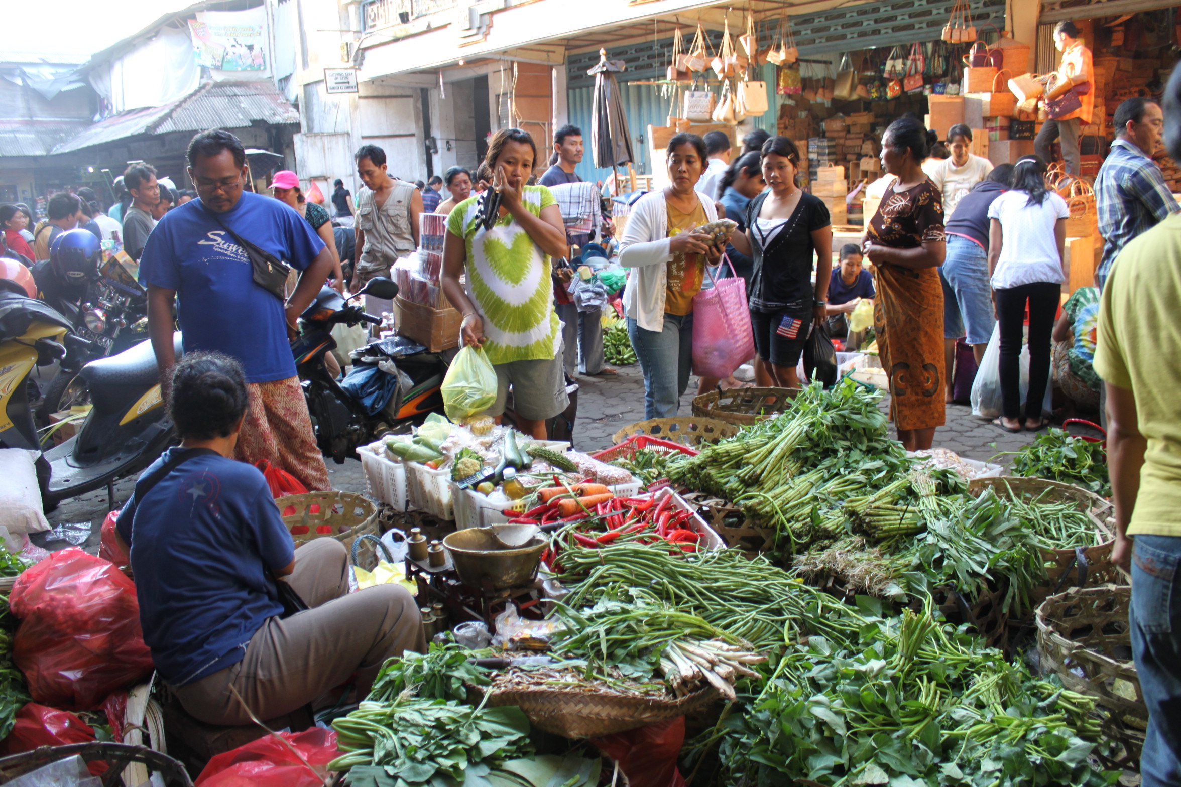 We escaped from all the New Year festivities here recently to the island of Bali in Indonesia. Most of our time was spent in Ubud, an area of very fertile rice terraces and a cultural center. It’s full of art galleries, furniture shops, antiques, wood carvings, silver jewelry, as well as batiks and other wonderful Indonesian textiles. Our favorite Balinese art forms are music and dance. We saw very interesting and wonderful performances almost every other night at the Arma hotel stage. We found this hotel to be a real oasis from the hot and noisy narrow streets of the town. With its own stage, and museum, an abundance of traditional sculpture and architecture, it is itself a center for Balinese art.